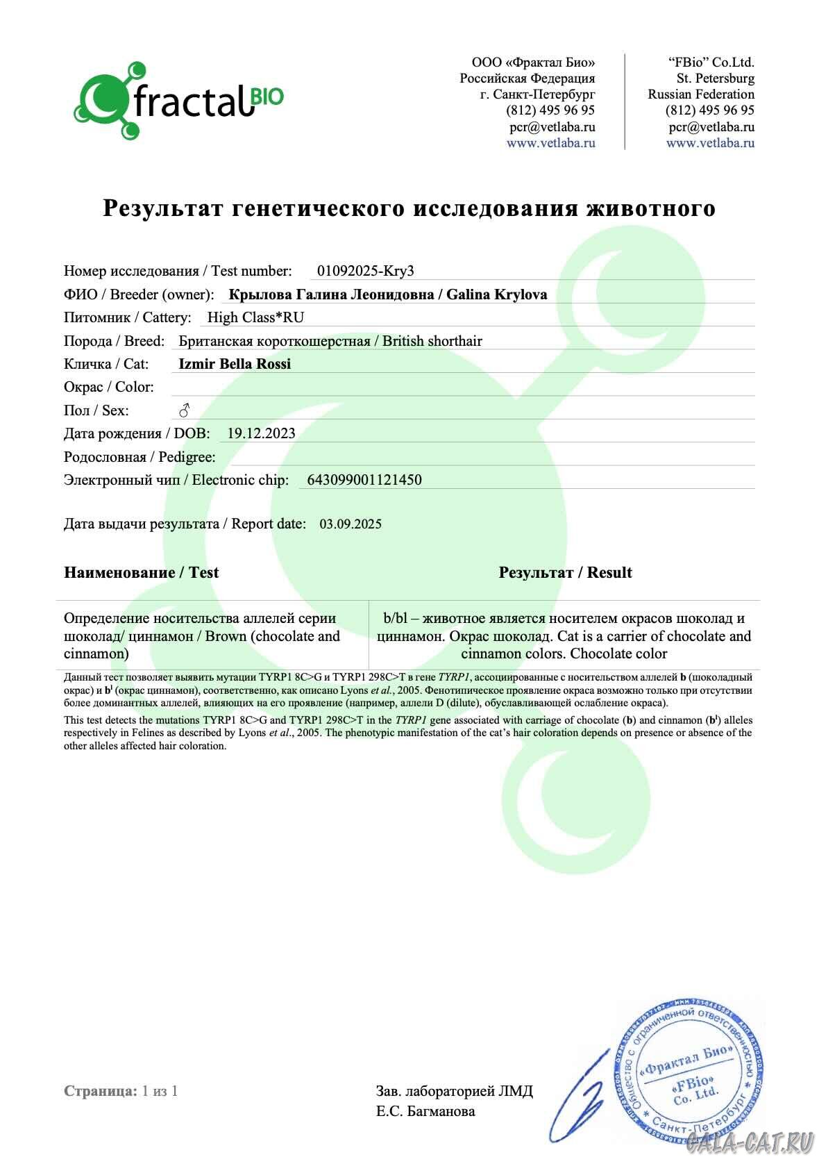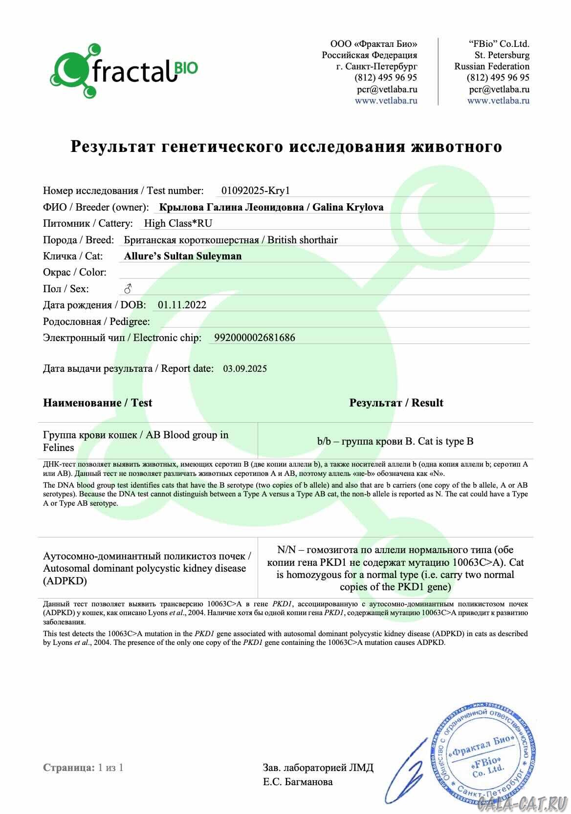 Поликистоз кошек (PKD): N/N - нормальный генотип